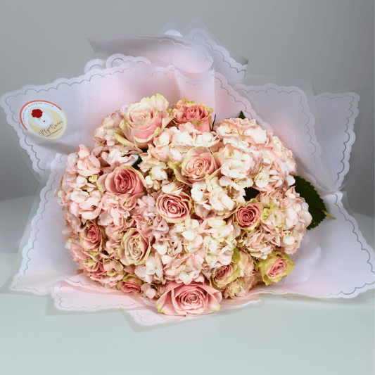 Flower Bouquet "On the Pink Cloud" with Premium Hydrangeas&Roses