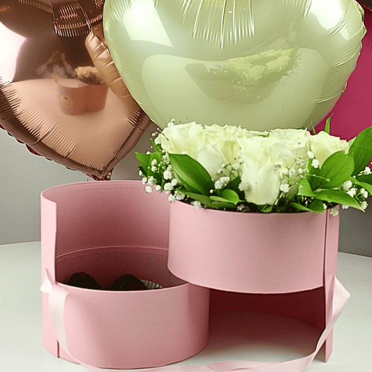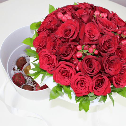 Pink Serenade | Surprise flower box with dipped in Belgian chocolate strawberriesRegular price $119.99 USDRegular priceUnit price / per$144.98 USDSale price $119.99 USDSale